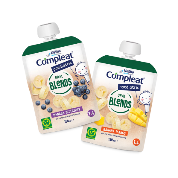Compleat® Paediatric Oral Blends zijn volledige, energierijke drinkvoedingen op basis van fruitpuree (53%), met ingrediënten uit echte voeding. Voor kinderen vanaf 1 jaar.